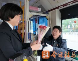 市公交公司婦聯(lián)主席郇秀榮、副主席黃晶攜女職工代表,早早來到站臺,向候車的女性市民送上鮮花與節(jié)日祝福。車門開啟后,郇秀榮登車向她獻上鮮花,并致... 詳細>